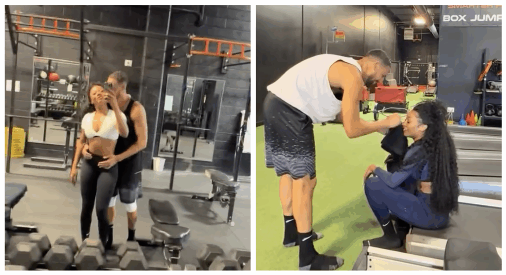 She captioned their photo, saying, “Not I got him working out with no shoes on lol.” “his little remark.”