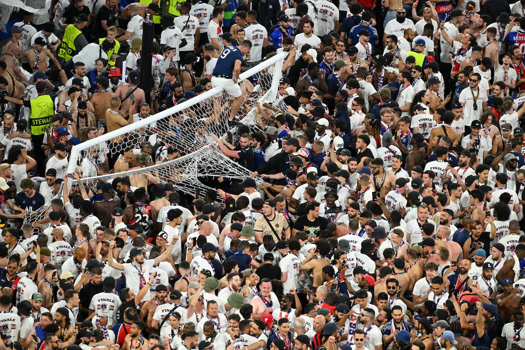 Following the whistle, thousands of PSG supporters poured onto the field to celebrate the team’s first European Cup victory. Stewards found it difficult to maintain control as many supporters from behind the goal poured onto the field.