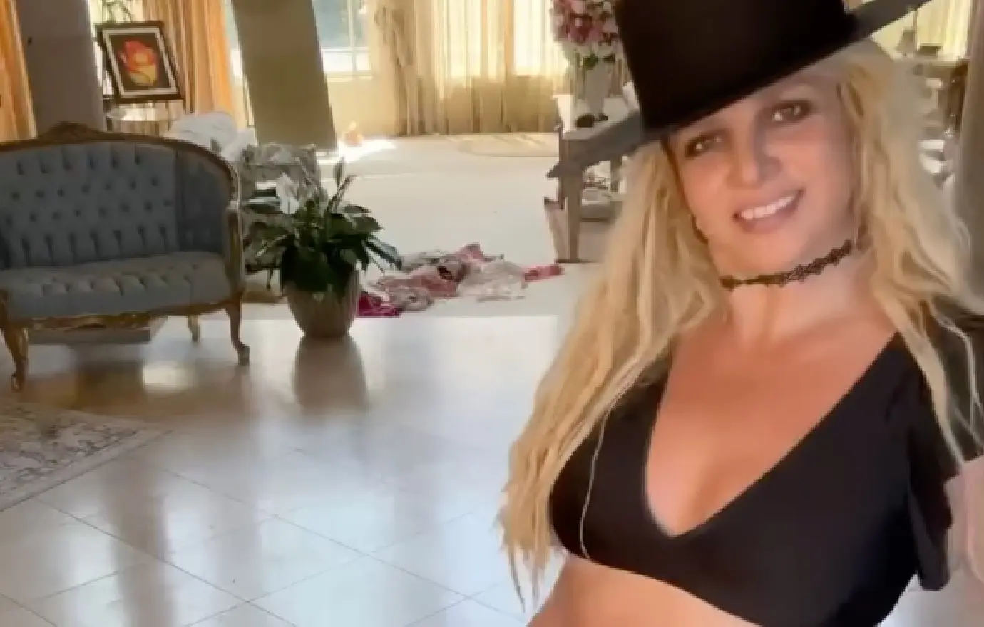 Britney disclosed in a different video that she was cleaning her house but took a brief break.