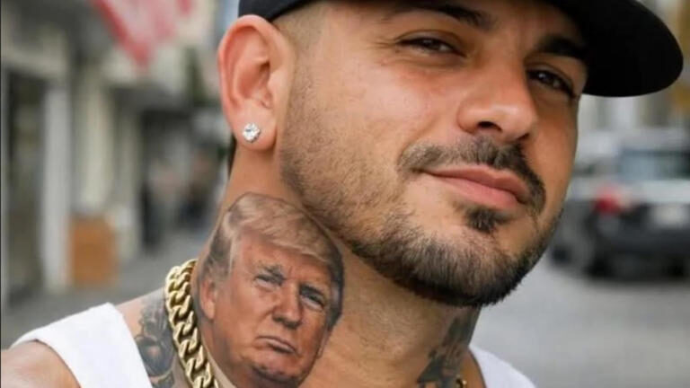 El Oski, a Cuban supporter of Trump, faces the imminent danger of deportation, his neck adorned with a prominent tattoo of Trump’s face