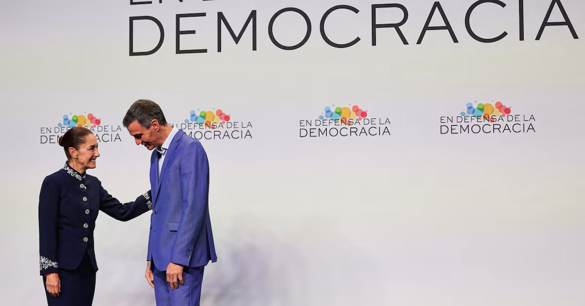 Mexican President Claudia Sheinbaum and Spain’s Pedro Sanchez convened in Barcelona on Saturday following a summit of progressive leaders.